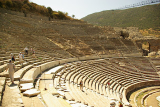 Dar piečiau- Efesas. Čia buvo vienas iš septynių pasaulio stebuklų- Artemidės šventykla. Šis antikinis miestas labai žavi. Įspūdingiausia- Celso biblioteka. Odeonas, teatras, gatvė su kolonomis, marmuru grįsta gatvė, pirtis, agora, viešieji namai, viešasis tualetas, kuriame ir dabar smagu pasėdėti ir pasifotografuoti su grupe.
