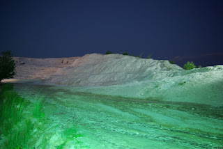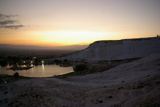 Nakvojame apčioje Pamukkalėje, viešbutyje. Čia tiesiog kieme karšti seklūs baseinai. Vanduo iš tų pačių šaltinių. Baseinuose skirtingo karštumo vanduo, bet visur atsideda dumblas. Išsitepame kūną dumblu, gulime ant pilvo baseine ir žiūrime kaip apačioje kieme dainuoja artistai.