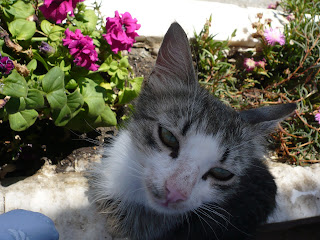 Pasifotografuojame krantinėje, pasivaikštome vienintele gatve. Kaip papuošalas kitame restorane kabo aštuonkojis. Kaimo gale randame žemuoginį medį, aplipusį uogomis. Jos lipnios, trykšta, tepa rankas, bet labai skanios.