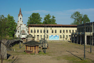 Aplankiau šias įžymybes. Netoli Slampės butaforinis miestelis Cinevilla. Čia kuriami filmai. Randu čia seną garvežį, pastatą iš vienos sienos.