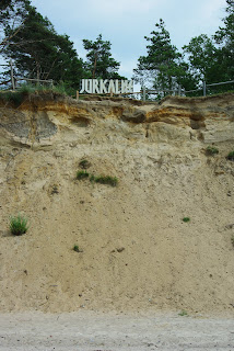 Keliauju Jūrkalnės link. Kelias arčiau jūros, bet privažiuoti nėra kaip. Visur draudžiami ženklai. Pagaliau Jūrkalnė- Ventspilio savivaldybės mažas miestelis palei jūrą.