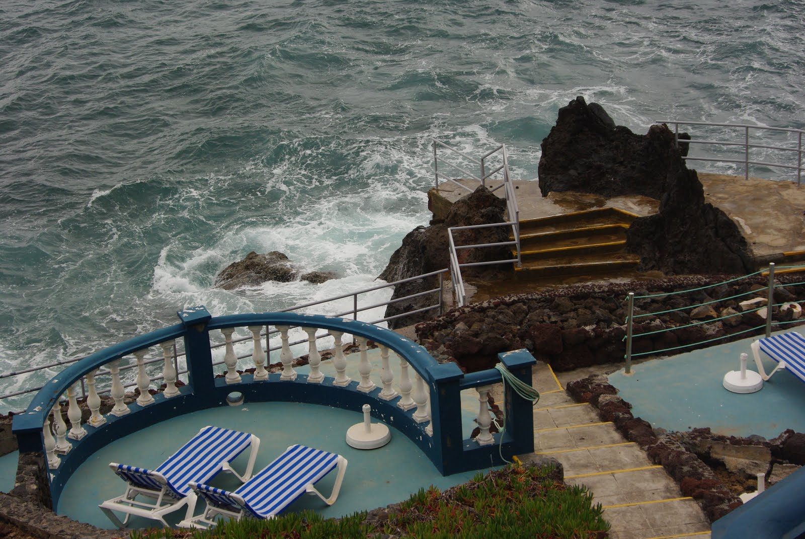 Čia lavos sustingę liežuviai įvairiausių formų. Jie padalija pakrantę į baseinus, kuriuose patogu maudytis. Išbandžiau šį malonumą. Užsiėmiau laisvą baseiną ir plaukiojau jame. Tokie baseinai yra čia ir Seixel’e.
