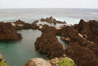Šiaurės vakaruose yra Porto Moniz miestas. Jis nedidelis, bet labai jaukus. Daug po jį vaikščiojom ir važinėjom. Buvom jo bažnyčioje. Pirkom suvenyrus. Čia daug suvenyrų parduotuvių, jos erdvios, pirkėjų mažai, suvenyrai pigiausi. Porto Moniz garsus savo ugnikalnio lavos suformuotais baseinais vandenyne prie kranto.