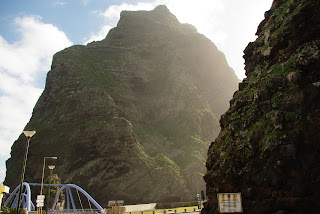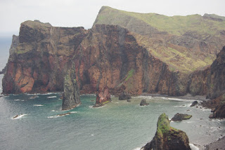 Porto Moniz’e kylame serpantinu ant uolos, vaizdai vis gražesni ir toliau matosi. Užvažiavus yra gražus Santa miestas, puiki bažnyčia. Nuo čia atsiranda daug spygliuočių, nes aukštai. Važiuojame takoskyra, plokštikalne, kur ganosi laisvi gyvuliai.