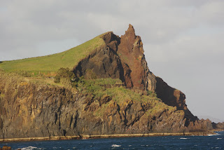 Už šio taško 2 salos su švyturiu, ten nueiti neįmanoma. Grįžtame tuo nuostabiu taku per uolas ir pievas. Čia žydi violetinės ir baltos gėlės.