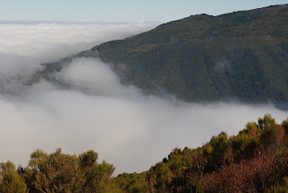 Privažiuoju kalną ant kurio nematyti namų, tik medžiai. Pagalvojau, jog jis per status gyventi. Tikėjausi privažiuoti sankryžą. Pasirodo, jog kelias užvingiavo ant to kalno, o po to pasirodė sankryža.Nuo kryžkelės vienas kelias vedė dar aukščiau- ant kalno Pico do Areeiro. Nuo ten galima pėsčiomis eiti iki Pico Ruivo, aukščiausio Madeiros kalno. Čia debesys plaukioja žemiau.