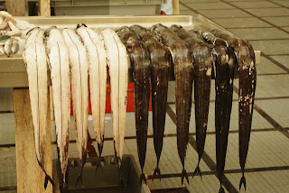 Žuvų turgus sostinėje susisiekia su vaisių turgumi. Tik čia vienas aukštas, dirba iki 13 val., kai vaisių iki 16 val. Čia parduodami įspūdingų matmenų tunai, perpjauti skersai ir žiauriai atrodantys. Parduodamos keistos juodos ir baltos ilgos, siauros vandenyno žuvys.