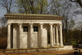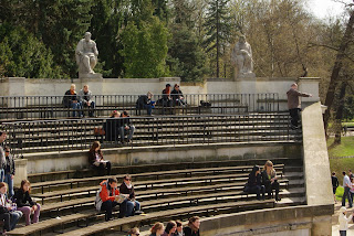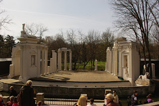 Į pietus nuo jų amfiteatras su scena atskirta vandens. Joje antikos griuvėsių imitacija su vaikštančiais povais tarp jų. Statoma buvo pagal Romos forumo griuvėsius.