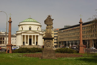 Šalia Varšuvos Universitetas ir Dailės Akademija. Universiteto daug pastatų, žydi našlaitės ir magnolija, studentai saulės atokaitoje mokosi. Ant vieno suolo sėdi bronzinis studentas. Sėdu šalia paskaityti. Kaip tik atvirų durų dienos, tad interesantų netrūksta.