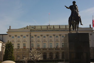 Toliau A.Mickevičiaus paminklas. Daugėja pareigūnų įvairiomis uniformomis. Pasirodo, jog mes prie prezidentūros. Iki pastato 2 griežtumo zonų tarpas. Šioje tvoros pusėje ant žirgo sėdi kunigaikštis Poniatovskis. O ant pastato plaikstosi valstybinė vėliava.