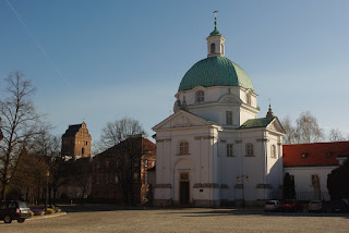 Netoliese aikštėje barokinė šv. Kazimiero bažnyčia, pastatyta padėkai po pergalės prieš turkus prie Vienos atminti. Pastatė Jonas III Sobieskis ir žmona Kazimiera. Užeiname į bažnyčią.
