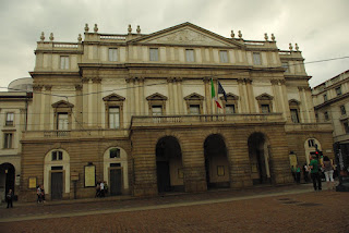 Išėjus per galeriją, patenki prie La Scalos, garsiojo teatro, prestižiškiausio teatro Europoje. Neoklasicizmo rūmai iš išorės santūrūs, įspūdingi iš vidaus. Priešais teatrą stovi paminklas Leonardui da Vinčiui.
