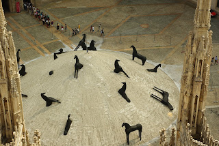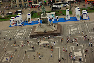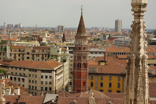 Lietuvių turistus Milane sutikau tik ant katedros stogo. Matyt katedra užburia visus. Ant stogo yra kur atsisėsti, pailsėti, nuspausti fotomygtuką kitu rakursu. Katedros aikštės tolumoje ant pjedestalo Vittorio Emanuele II paminklas. Šalia Katedros aikštės stovi Karalių rūmai (Palazzo Reale).