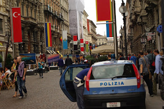 Gyventojai italai, už juos tamsesni šiaurės Afrikos atstovai ir tamsiausi mulatai ir juodaodžiai. Paskutiniai metro stotyse pardavinėja muilo burbulų pistoletus. Arba turi kišenėje trupinių ir bando parduoti turistams balandžiams lesinti Duomo aikštėje. Mieste daug kavinių, kitų maitinimo įstaigų. Jei tai nėra prestižinė lokalizacija, jose karaliauja tamsaus gymio šiaurės Afrikos atstovai.