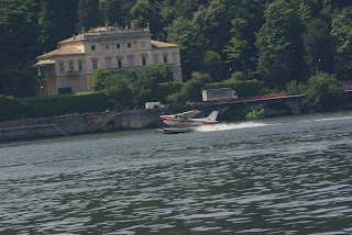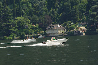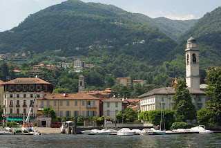 Komo ežero pakrantės stačios, ežeras gilus. Daug miestelių, rūmų. Už miesto tuoj eina autostrada į Šveicariją, kuri už kelių kilometrų. Plaukiu dideliu laivu po ežerą. Tai labai romantiška . Pakrantėse tiltukai, prie kurių švartuojasi laivas. matyti pilys, rūmai, miesteliai. Čia viskas skirta poilsiui, turistams. Įžymybės prie ežero perka nekilnojamą turtą.