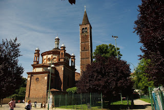 Basilica San Eustorgio. Ji randasi piečiau ankstesnės, prie pat Tičino vartų. Viduje dešinėje yra 3 karalių koplyčia. Šventas Eustorgijus buvo Milano vyskupas IV amžiuje tuoj po Milano edikto paskelbimo.