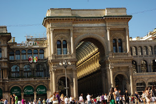 Aplink šią aikštę prasideda prabangios parduotuvės. Taip pat Galleria Vittorio Emanuele II. Tai erdvus prabangus pasažas, pastatytas XIX a. antroje pusėje, pavadintas pirmo suvienytos Italijos karaliaus vardu. Beje šiemet suvienytai Italijai 150 metų- gražus jubiliejus.