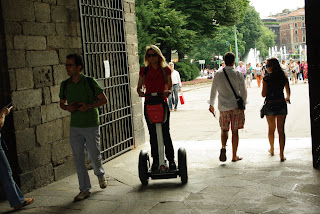 O gal Milanas pasirinko mane? Oras +30 laipsnių šilumos. Asfaltas, namai įkaitę net sutemus. Mieste automobiliai, troleibusai, tramvajai, autobusai… O motorolerių ir motociklų gausybė. Jais važiuoja visi. Ir elegantiškos moterys , kurių drabužių spalvos suderintos. Ir kostiumuoti vyrai su kaklaraiščiais. Milanas tiesiog įtraukia į tą transporto ir daugybės pėsčiųjų srautą.