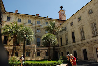 Breros pinakoteka- senamiestyje įsikūrę rūmai, antrame aukšte įspūdinga dailės kolekcija. Čia garsiausi vardai: Rafaelis, Canaletto, Tintoretto, Caravaggio, Veronese… Rūmai didingi , rūstūs, juose galima pasiklysti. Kieme impozantiškų arkų fone stovi Napoleonas su pergale rankoje, aliktas Canovos. Aš po juos klaidžiojau su malonumu, kai lauke karšta, juose vėsu. Radau dabar nupieštų aktų parodą. Nes rūmuose įsikūrę Dailės Akademija, observatorija, biblioteka.