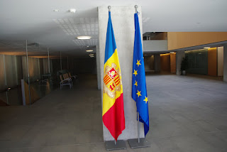 pasimetė. Ant miesto plano pripiešė linijų. Apie lankymą nežinojo. Kai pasiekiau Parlamentą, užėjau. Nufotografavau Andoros valstybinę ir ES vėliavas.