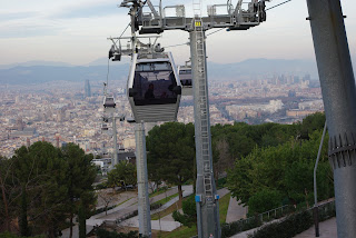Važinėjome 2-aukščiu autobusu po Barseloną, 2 maršrutais. Atvykome ant Monžuiko kalvos. Čia policija riboja eismą. Nes šalimais Sant Jordi rūmuose vyksta vyrų pasaulio rankinio čempionatas. Tarp sirgalių dominuoja prancūzų ir vokiečių vėliavų spalvomis išsidažę sirgaliai. Bet alų jie gėrė kartu ir taikiai.