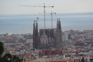Sagrada Familia. 1882 metais pradėta statyti bažnyčia dar tebestatoma. A. Gaudi ją kūrė apie 40 metų. Lietuviškai būtų “Šventosios Šeimynos bažnyčia”. 87 metrų ilgio. Pastatyti 2 fasadai , turintys po 4 bokštus. Dar nepastatytas centrinis 170m bokštas, vienas fasadas. Buvau pakilęs į Kančios fasado bokštą, kitu bokštu nulipau. Aplink daugybė gėlių, kryžių, įvairių puošybos elementų. Tiesių linijų nesama. Laiptai spiraliniai. Sudėtinga viską aprašyti, geriau vieną kartą aplankyti.