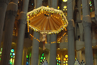 Viduje kolonos lenktos. Šviesa išsklaidyta, pavyksta nufotografuoti lubas. Architekto užmojai kolosalūs. Paklaustas A.Gaudi dėl ilgai trunkančios statybos supersudėtingo statinio, autorius atsakė : “Mano užsakovas ( Dievas ) turi laiko”. Nėra ką pridėti.