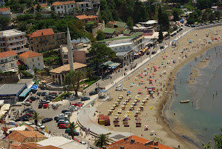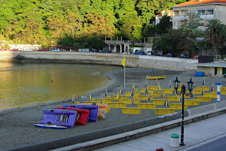 Ulcinio paplūdimiai. Mala plaža. Miesto centre, trumpas, įlankoje. Seklu, galima tolokai bristi. Niekur nėra jūros ežių.