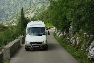 Prieš akis ekstremaliausias važiavimas Kotoro kopėčiomis- serpantinu su 25 posūkiais. Posūkiai sužymėti skaičiais nuo apačios. Pamatėm 25 ir apsidžiaugėm. Iš tikrųjų posūkių daugiau, manau virš 30. Asfaltuota juostele gali važiuoti tik 1 mašina.