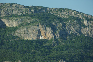 Matosi garsiausias Juodkalnijos Ostrogo vienuolynas kairėje už Zetos upės. Jis iškaltas uoloje, aukštai. Matosi tik fasadas lyg kregždučių lizdas aukštai. Tiksliau laaaabai aukštai, arčiau uolos viršaus, nei apačios.