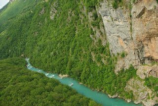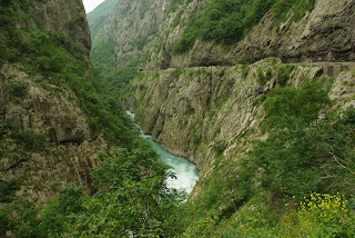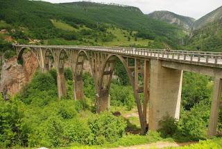 Taros tiltas pastatytas tarpukariu, sugriautas, vėl atstatytas. 150 metrų aukščio tiltą pervažiavom ir perėjom. Nėra ką pridurti- reikia pamatyti. Nuo Kolašino važiavom giliausiu Europoje kanjonu. Čia populiarus raftingas Taros upe.