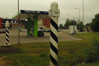 Kadangi Estija ir Latvija yra Šengeno susitarimo dalyvės, kirsti sieną galima visur. Tad sustoju, apeinu pasienio stulpą. Viena koja Latvijoje, kita- Estijoje.