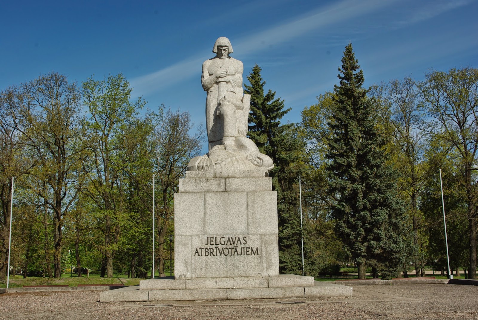 Jelgavoje prie geležinkelio stoties yra Lačplėsio paminklas. Lačplėsis- latvių mitologinis herojus, A. Pumpuro apdainuotas epe, žmogaus ir lokės sūnus.