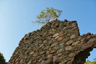 Už jų matau žmones per plyšius. Kažkur kaukia signalizacija. Pasirodo, jog patekau į neeksponuojamą pilies dalį, kur lankytojų nelaukia. Nemunėlio krantai ties pilimi statūs ir aukšti.
