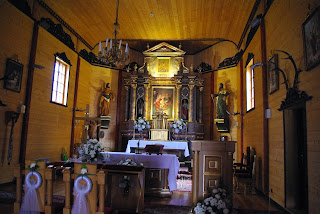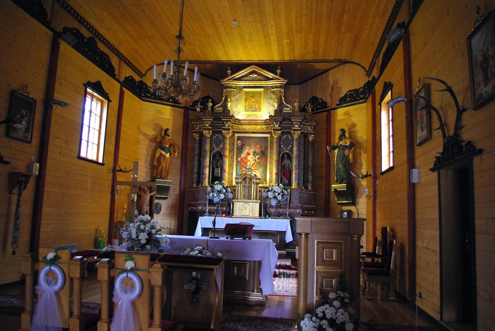 Jos interjeras tamsus medinis , bet gražus. Įspūdingi šviestuvai su ragais. Čia mėgsta tuoktis jaunavedžiai. Į šią šventą vietą lengva atvažiuoti nuo Augustavo- Seinų plento apie 1 kilometrą.