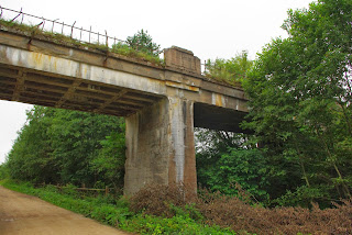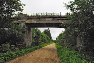 Atvirame lauke 2 lygių sankryža. Vokiečių palikimas. Iš pamiškės šunkeliu atsirandame ant viaduko. Jo iš toliau nematyti dėl laukinės gamtos. Jis apleistas ir nenaudojamas, bet pervažiavau sėkmingai. Nusileidau žemyn ir nufotografavau iš apačios.