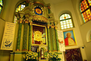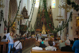 Tačiau atlaidai būna įspūdingi. mišios laikomos lauke. Kunigų dešimtys. Patarnautojų šimtai. Žmonių tūkstančiai. Prie Jono Pauliaus II paminklo būna altorius. Šv. Mišias rodo ekranai. Vasarą teko būti.