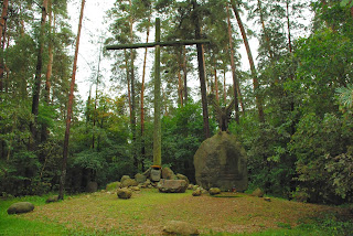 Vis dėlto pasienio keliu važiuojame, kol pasiekiame draudžiamus, grasinančius ženklus. Pasiekėme Karaliaučiaus srities pasienį. Šunkeliu išsukame į Lenkijos pusę. Labai purvinu keliu greitai pasiekiame trijų šalių sienų sankirtos ženklą.
