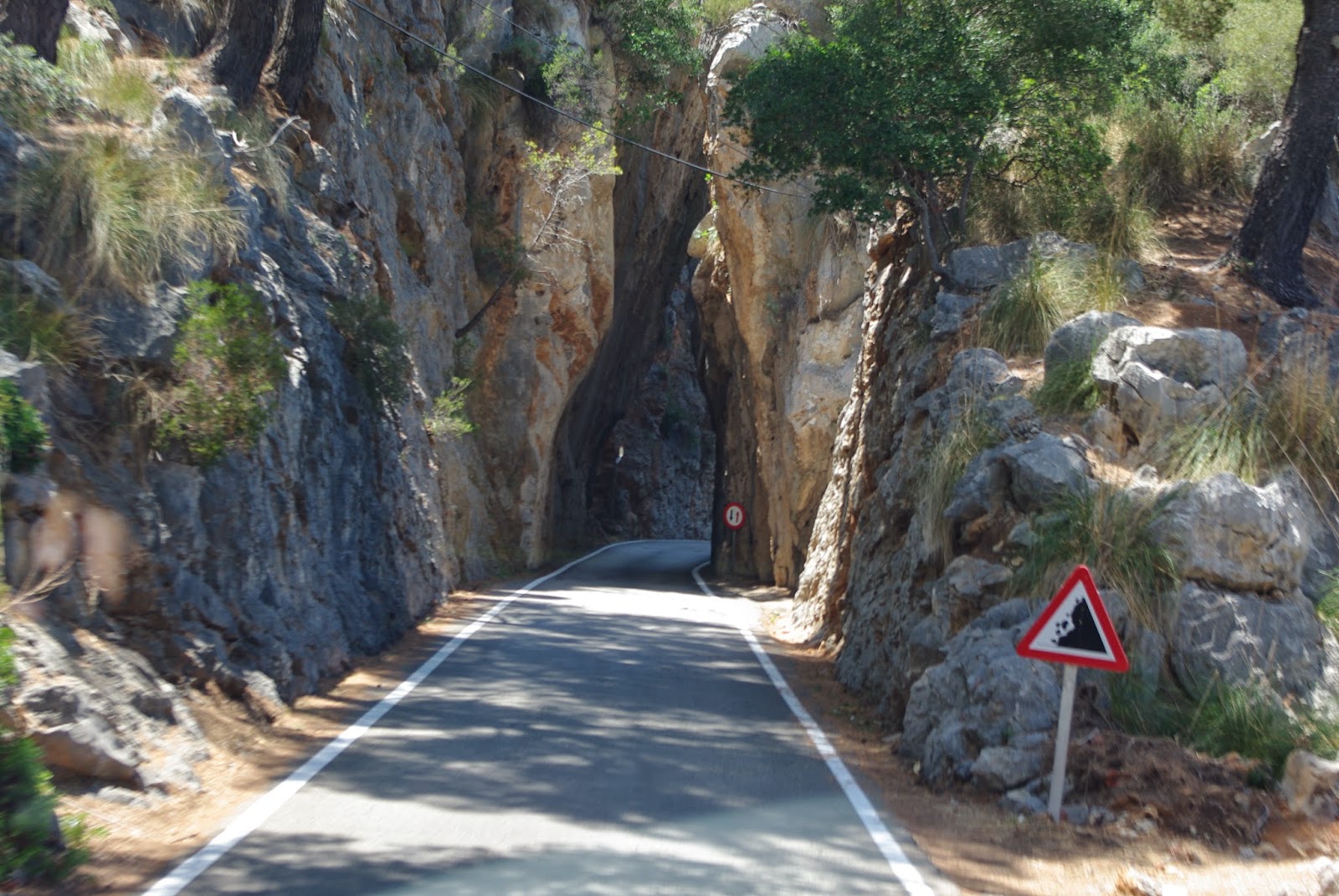 Iš Lluc vienuolyno Sa Calobra keliu vinguriavome žemyn. Ispaniškai tai reiškia “gyvatę”. Pasiekėme kilpą, kur kelias apsisuka 360 laipsnių kampu. Tai vadinama Nus de Sa Corbata (kaklaraiščio mazgas). Ties mazgu pailsėjome.