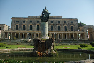 Nuo salelių žiūrime į kalnus. Jie žali, pasipuošę kiparisais, žali. Aukštoje vietoje slypi Korfu legenda. Saloje mėgo atostogauti Sisi, Austrijos imperatorienė, Elizabeth. Jai buvo pastatyti rūmai.
