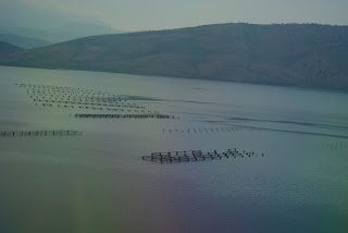 Ežeras Vivari kanalu susisiekia su jūra. Per Vivari kanalą tilto nėra. Automobilius perkelia keista plokštuma, lynu sujungta su krantu. Ežero didelis vandens plotas. Jame auginamos midijos. Mačiau jų „fermas“.