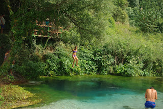 Virš to viso slėnio žali šlaitai, žaluma sodri. Yra kavinės, kur albanai švenčia, šoka. Jiems žydroji akis prilygsta stebuklui. Mums reikėtų geresnio kelio į ten.
