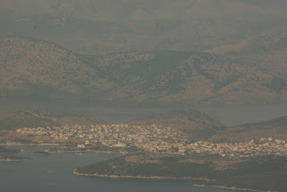 Albanijos pietinė pakrantė gerai matosi iš aukštai, iš lėktuvo arba aukščiausio Korfu kalno Pantokratoro viršūnės. Netgi matosi sūrus Butrinto ežeras, miestai.