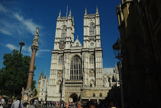 Kitas tikslas- Vestminsterio abatija. Praeitą kartą į čia buvo labai ilga eilė, todėl nepatekau. Dabar eilė nedidelė. Gotikos aukštis ir grožis stebina. Čia daugybė įžymybių palaidota. Kitų yra tik antkapinės plokštės. Palaidoti garsūs mokslininkai: I. Niutonas, Č. Darvinas, M. Faradėjus, E. Rezerfordas, D. Listeris, keliautojas D. Livingstonas. V. Čerčilio memorialas. Pastarasis labai gerbiamas Anglijoje. Paskutinio karo metu jis vadovavo šaliai, nepabėgo, buvo su tauta. Netoli yra išlikę “Karo kambariai”, kur karo metu dirbo, bet neužsukau.