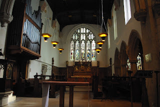 Stratford upon Avon. Šekspyro miestas vidurinėje Anglijoje. Kaip visur Anglijoje bažnyčia čia ypatinga. Šventosios Trejybės bažnyčia. Presbiterija pakrypusi nuo centrinės navos. Kloptonų koplyčia. Jie buvo mecenatai, pastatę tiltą per upę.