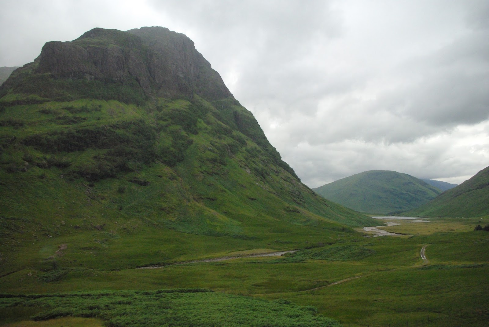Piečiau jo yra kita kalnų grandinė vadinama “3 seserys”. 3 kalnai gerai matosi nuo plento. Patogu fotografuoti, pozuoti. Kalnų viršūnės turi 3 skirtingus pavadinimus kiekviena atskirai: Glen Coe, Aonach Eagach, Bidean nam Bian. “Glen” išvertus reiškia “siauras slėnis”.