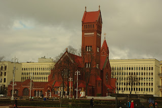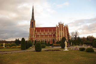 Neogotikinė grakšti aukšta, gražiai prižiūrėta bažnyčia papuoštų ir didelį miestą. Bokšto aukštis 61 metras- aukščiausias Baltarusijoje. Bažnyčia statyta 1899- 1903 metais.