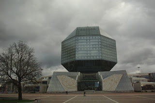 Minsko šiaurės rytuose stiklinis daugiakampis- biblioteka. Ji gražiausia sutemus dėl iliuminacijos, vakare verta pažiūrėti šviesos šou. Dieną daugiasienio stiklas atspindi debesis arba aplinką. Šalia jos stovi Pranciškaus Skorinos paminklas. Jis 1522 metais Vilniuje išleido pirmąją LDK spausdintą knygą. Pastaroji buvo rusėnų arba senąja baltarusių klaba.