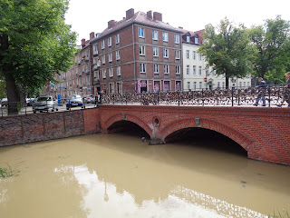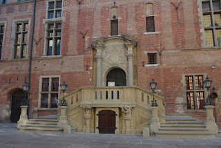 Grįžtame piečiau. Prieiname Senamiesčio rotušę. Tai visai kitas pastatas kitoje vietoje. Tikrai turtingas miestas, kuris turi ne vieną rotušę. Pastatas puošnus filigranuotas raudonų plytų 2 aukštų kvadratinio plano su bokšteliu.