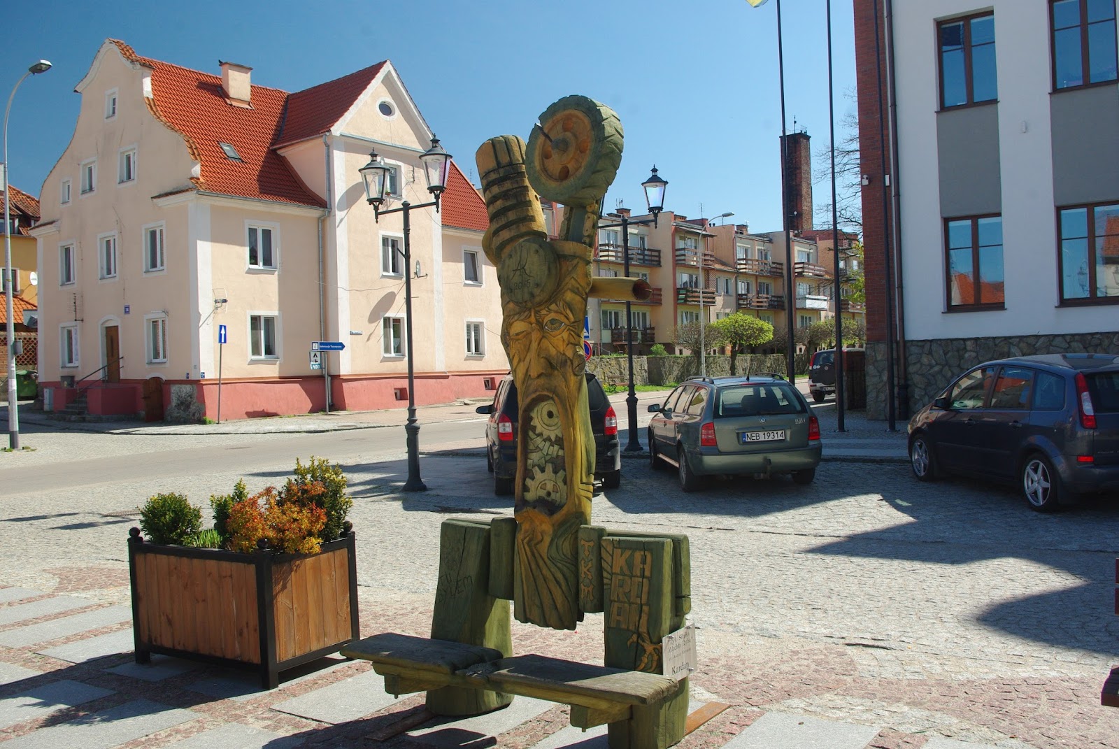Daugiabučiai gyvenamieji namai. Švyturys. Centrinėje gatvėje kavinės. Vienoje jų skaniai pavalgėme. Aš mėgstu flekų sriubą. Priėjome savivaldybės pastatą. Šalia yra muziejus.